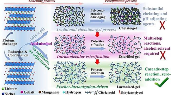 A simple, highly efficient, inexpensive, and environmentally friendly process could provide a viable pathway for the sustainable recycling of depleted lithium-ion batteries (LIBs): No chemicals beyond citric acid need to be added to leach out and separate over 99% of the lithium, nickel, cobalt, and manganese metals contained in NCM batteries. The resulting recycled material […]