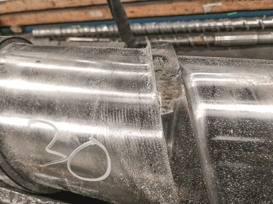 Before screws are rebuilt it’s a good practice to grind the old weld off and check for cracking.